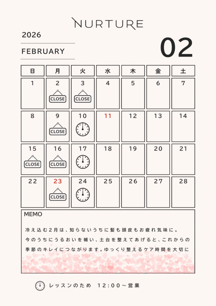 2月末は卒業シーズンに向けて混み合いますので、お早めのご予約をお待ちしています。