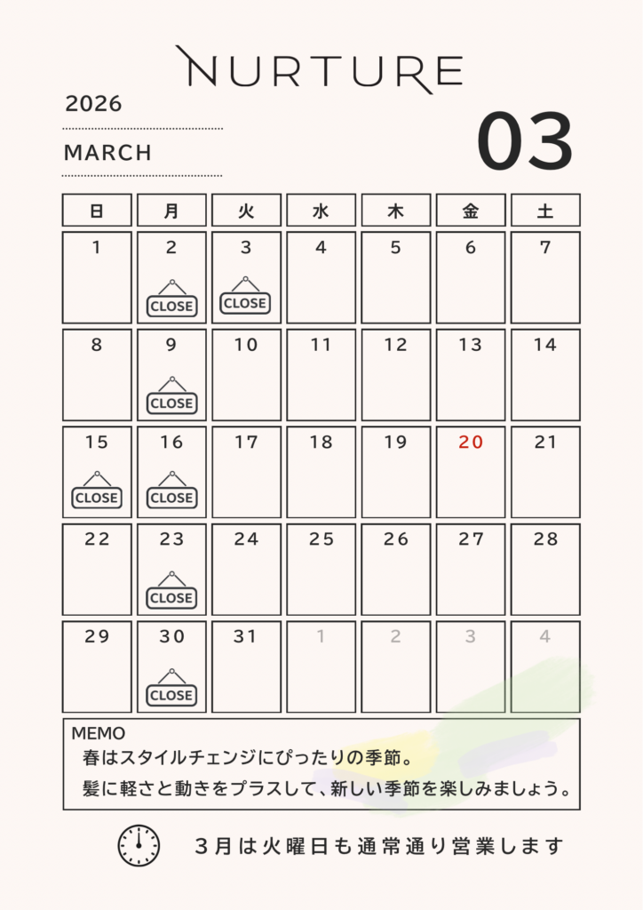 3月の定休日のお知らせです☆